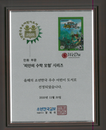 2020 소년한국 우수 어린이 도서 선정 페이지 정보 작성자 WeDu 댓글 0건 조회 8,161회 작성일 21-12-31 13:00 본문 2020-12-30 '리안의 수학 모험' 시리즈 우수 어린이 도서 선정 소년한국일보 대표이사 List Previous2021 4IR AWARDS 대상 21.12.31 Next2020 기술혁신 우수기업 21.12.31