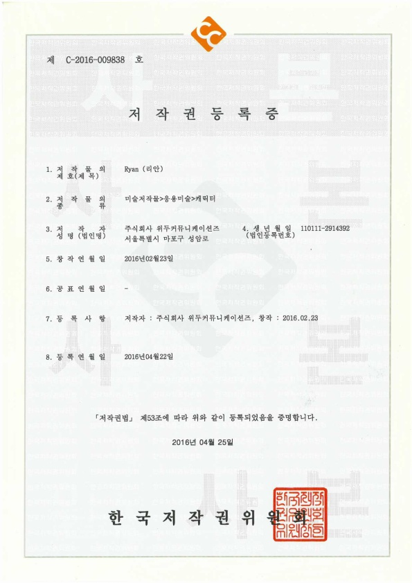 [한국/저작권] 리안 페이지 정보 작성자 WeDu 댓글 0건 조회 5,094회 작성일 19-05-30 19:08 본문 2016-04-22 저작권 C-2016-009838 리안 / 미술저작물>응용미술>캐릭터 List Previous[한국/저작권] 아리스 19.05.30 Next[한국/저작권] 나무트 19.05.30