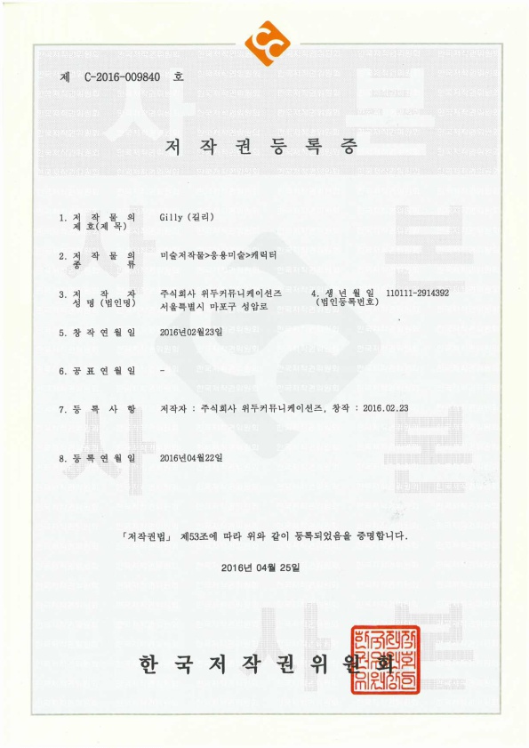 [한국/저작권] 길리 페이지 정보 작성자 WeDu 댓글 0건 조회 5,223회 작성일 19-05-30 19:07 본문 2016-04-22 저작권 C-2016-009840 길리 / 미술저작물>응용미술>캐릭터 List Previous[한국/저작권] 나무트 19.05.30 Next[한국/저작권] 리안의 수학 모험 19.05.30